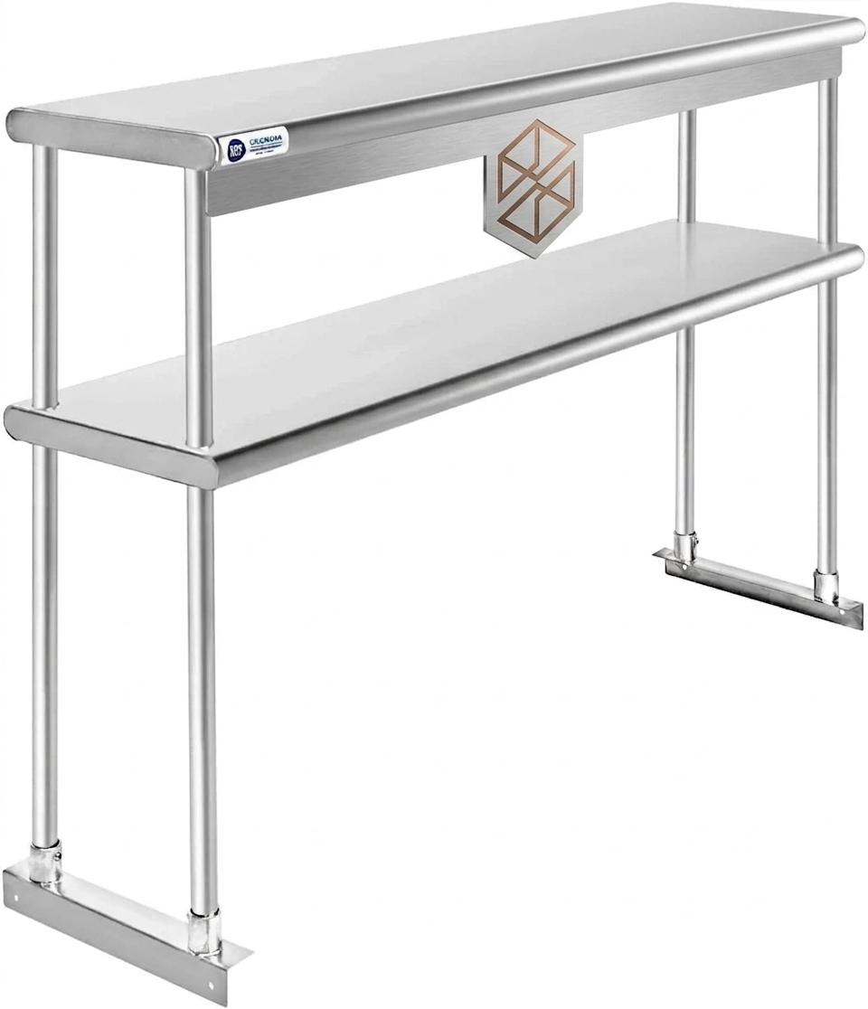 Stainless Steel Accessories LuxuryCommercial stainless steel double deck overshelf designed to maximize vertical storage.