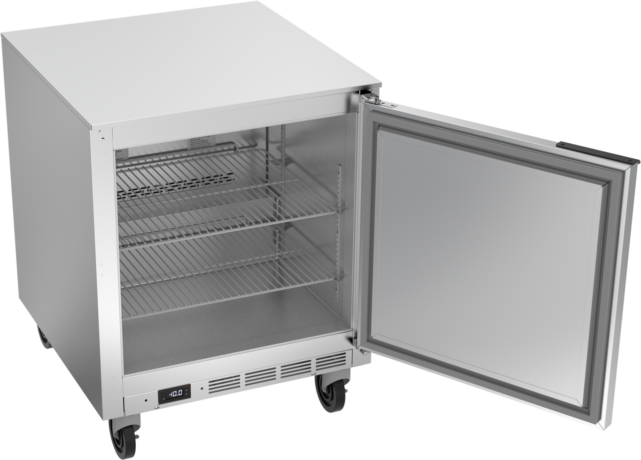 Featuring one solid door and epoxy-coated shelves, this undercounter freezer offers easy access, enhanced organization, and optimal functionality. Its compact design makes it the ideal choice for busy commercial kitchens where space is always a premium.
