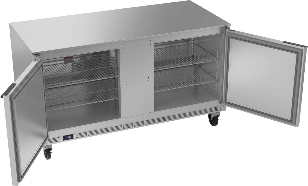 Discover the ideal refrigeration solution for your commercial kitchen with our two-section undercounter refrigerator. Measuring 60″ wide and offering a generous 14.75 cu. ft. capacity, this unit efficiently stores ingredients and beverages without consuming valuable floor space.